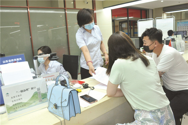 ???乳山市行政審批服務局工作人員指導群眾辦業務。