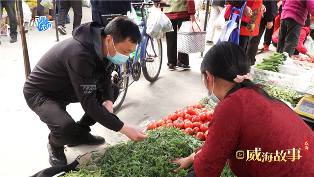 ??????來到張村集,原建峰直奔山苜楂攤位,通過手指掐嫩芽、摸葉子等來“鑒定”質量,流暢的動作,專業的眼神,一看就是行家。貨比三家后,原建峰選定了賣家,并現場砍起了價:“我們是社區食堂采購人員,以后肯定經常過來買菜,你再便宜便宜吧,就當交個朋友了。”一番討價還價后,原本售價4元1斤的山苜楂以10元3斤的價格成交。