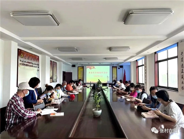 張村鎮各社區線上通過業主群、公眾號等,廣泛轉發防養老詐騙知識,線下通過召開黨員、居民代表大會,并利用電子屏、敲門入戶等方式,“點對點”精準提高轄區老人防范意識。