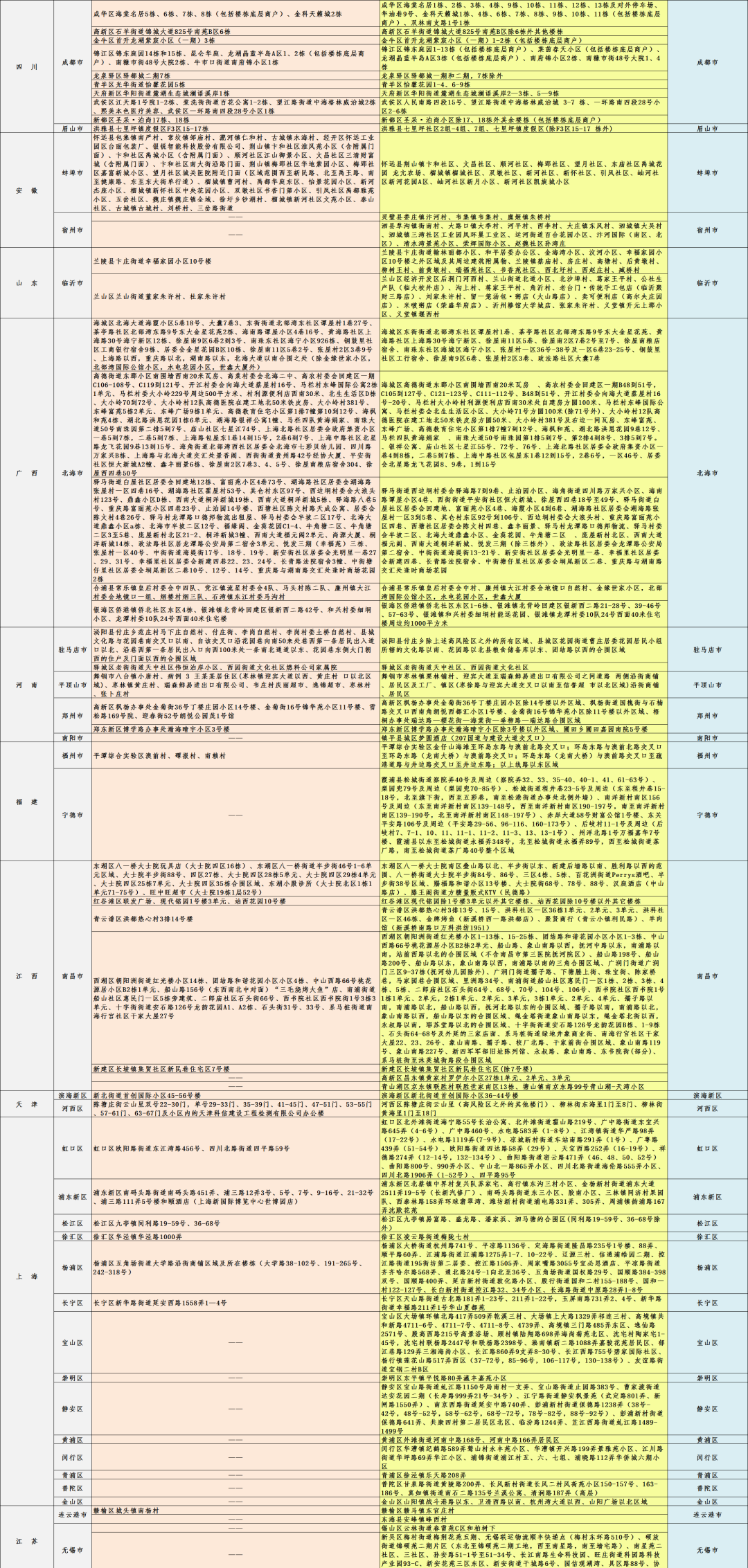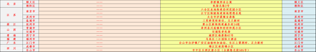 中高風險地區、所在縣(市、區)