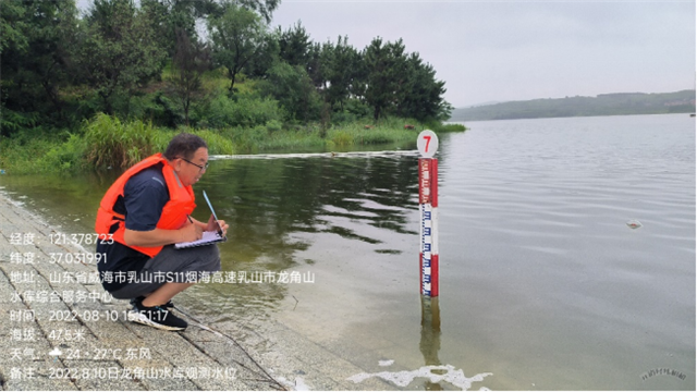 ??????8月9日上午,乳山市龍角山水庫,一個熟悉的身影正在風雨中觀測水位,他叫郭培濤,在離家120多公里的防汛抗旱一線已奮戰38年,可以稱作是威海水文戰線的“老黃牛”。