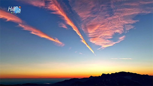 ??????8月17日傍晚,文登區上空忽現三道長條奇云,自東向西通向昆崳山頂,轉眼又變彩霞飛滿天,繽紛萬狀、色彩奇艷。婀娜多姿的霞光云氤,彌漫大半個天空,令人嘆為觀止。