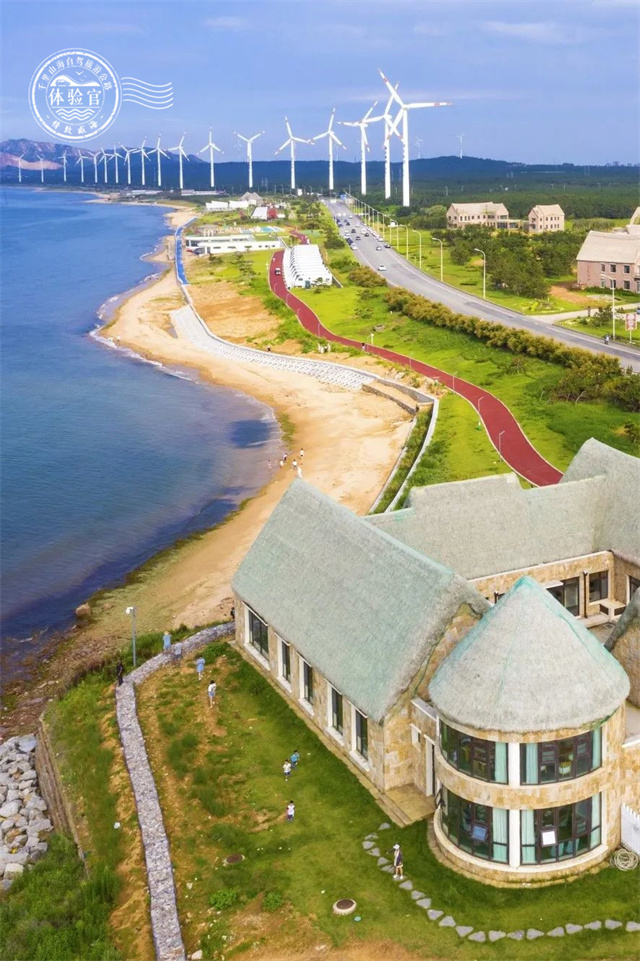 ??????一路奔馳在山海之間,風車、大海、松林、海草房依次出現在眼前,“海景巴士”仿佛開進了宮崎駿漫畫里的世界。