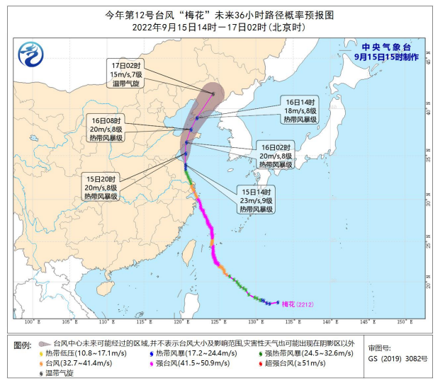 臺風“梅花”路徑更新預報