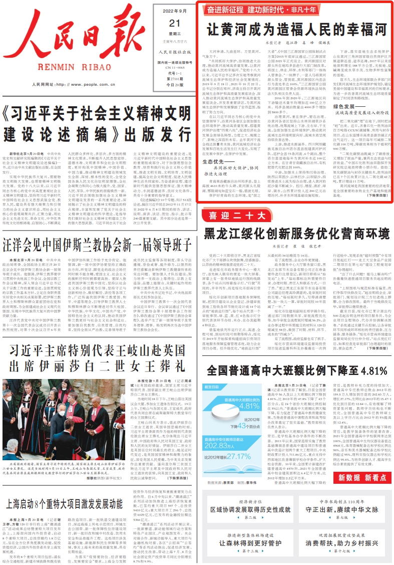 在以習近平同志為核心的黨中央堅強領導下,沿黃河各省區全面加強生態環境保護、推動高質量發展,搭建黃河保護治理“四梁八柱”,促進經濟社會發展全面綠色轉型,力度之大、規模之廣、影響之深前所未有。去年黃河干流全線達到Ⅲ類水體,黃河流域經濟社會發展和百姓生活發生巨大變化,實現了在發展中保護、在保護中發展。