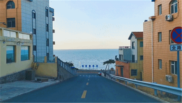 如果你錯過了夏季的火炬八街,那就去探尋秋天的火炬八街吧。遠處干凈的海面像一塊藍色的幕布高過屋頂,兩側是蘆葦叢與鱗次櫛比的彩色洋房,隨著車輛下坡前行,幕布緩緩落下,一望無際的海面便在眼前鋪開,像是在路的盡頭打開了一顆“彩蛋”。