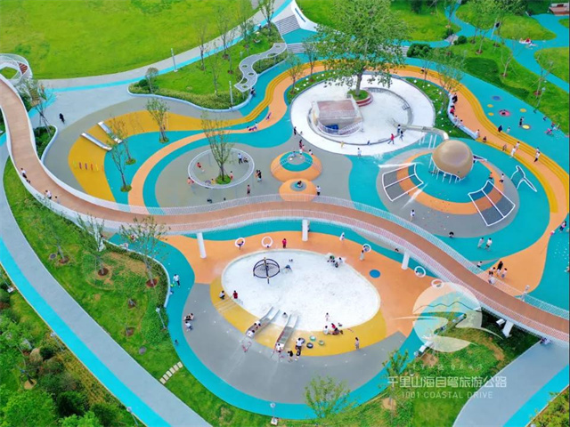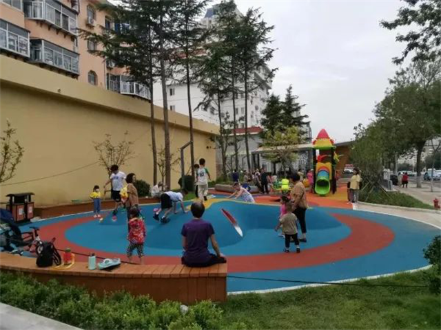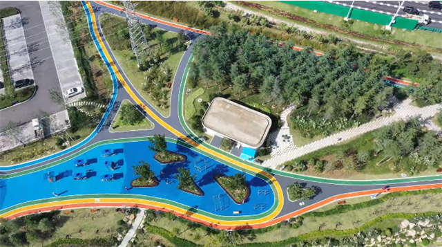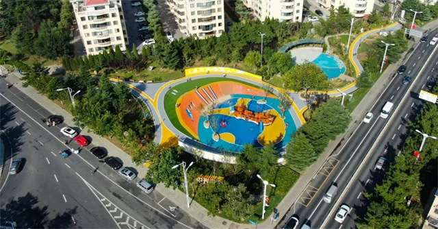 佳賽園位于威海臨港區(qū)中韓路與蔄興路交叉口,總建筑面積約13000平方米,劃分了運動場地、休閑廣場、兒童活動空間等功能區(qū),是一個以運動休閑為主題的開放式公園。公園內(nèi)的步道和地面鋪設了彩色透水磚和彩色透水混凝土,為公園增添了不少活力。