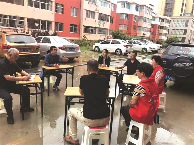 梁兵(左二)進社區以案釋法公開調解矛盾