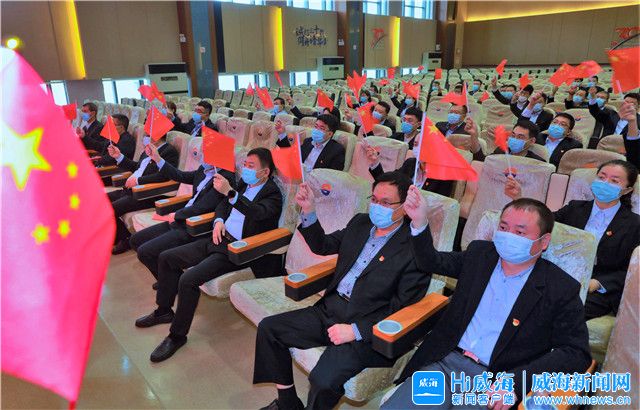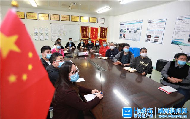 ??????當天上午,在威海廣泰空港設備股份有限公司會議室,全體黨員干部們齊聚一堂,認真收聽收看黨的二十大開幕實況。
