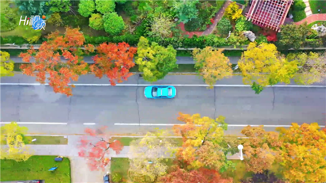 ??????深秋時分,漫步于威海濱海大道,各色秋葉交相輝映,美若詩畫。