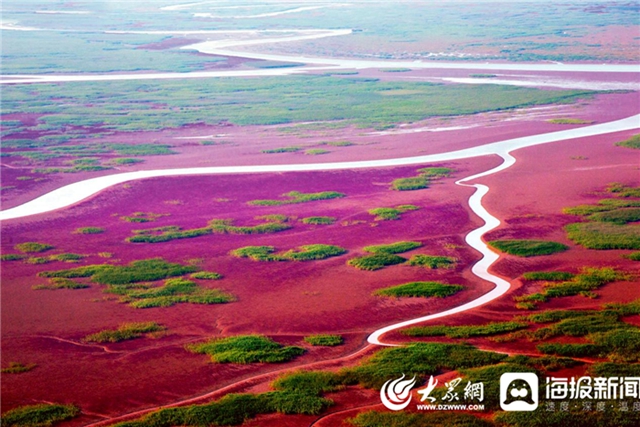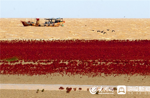 綿延不絕的翅堿蓬把廣袤的灘涂染成紅色,成為秋季黃河口獨特的風(fēng)景。胡友文 攝