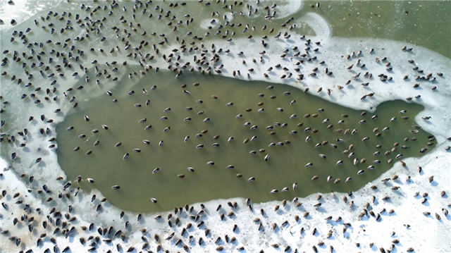 鳥兒在山東黃河三角洲國家級自然保護區(qū)越冬。楊斌 攝