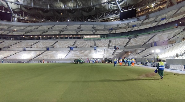 去年9月,盧賽爾體育場成功移植面積達8870平方米的綠色草坪。中國鐵建項目團隊采用雨水收集回收再利用與海水淡化技術,同時結合全球領先的智能節水噴灌系統,對灌溉水泵、噴頭開關、噴灌區域和噴灌時間進行自動化控制,最終實現比傳統體育場節省約40%的淡水。