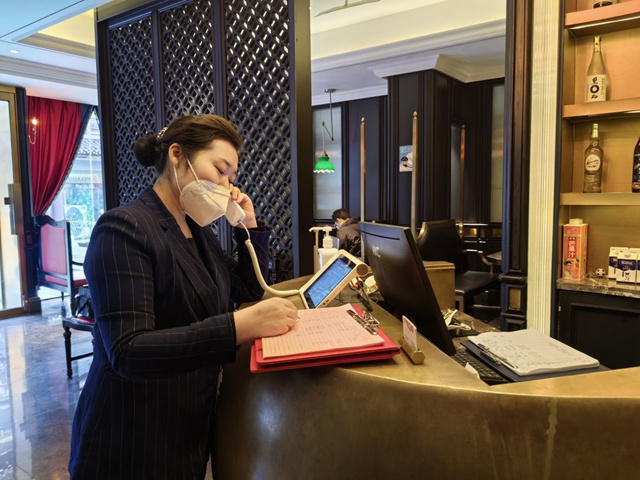城南往事大觀樓工作人員接聽顧客預(yù)訂電話。新華社記者陳國峰攝