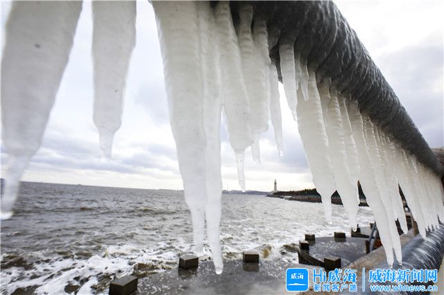 ??????在市區威海公園沿岸邊出現冰凌景觀,玉樹瓊枝,晶瑩剔透,美不勝收。