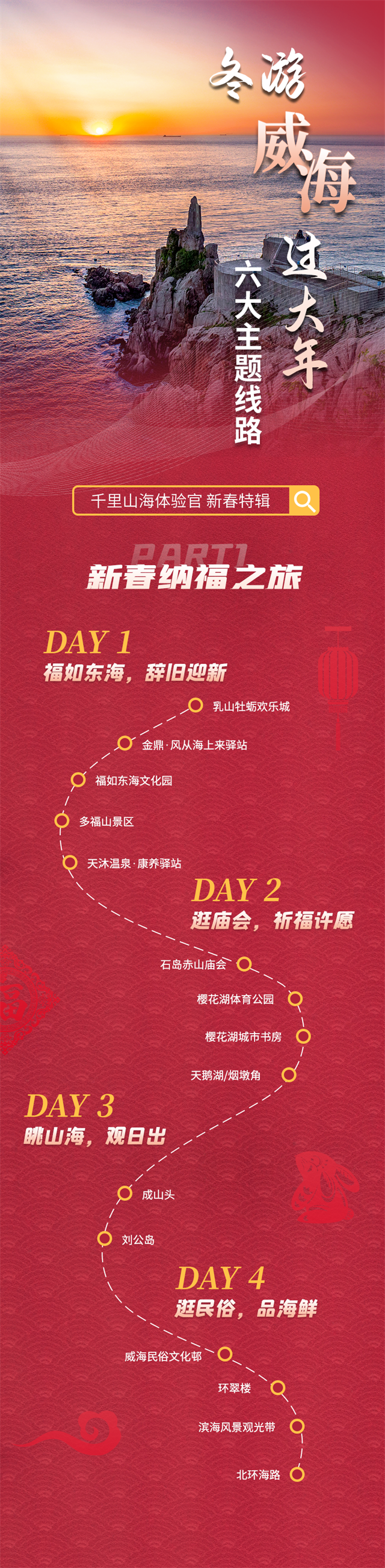 這六條主題路線,給你一個完美的春節之旅!(Hi威海客戶端記者 胡楊/文 劉彬 宮舉衛 威海市文旅局 乳山市文旅局/圖 徐磊 郭家琪/設計)