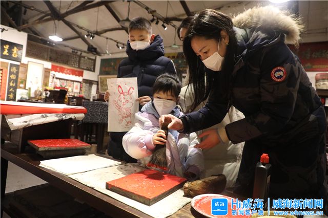 ??????“顏料不要抹太多,用刷子刷均勻,鋪上宣紙,再用刮板壓平,你看,一幅木版年畫就完成了!”1月23日傍晚,環翠區竹島街道新威附路特色街區的“吉呈軒非遺體驗基地”里,洋溢著別樣的年味。