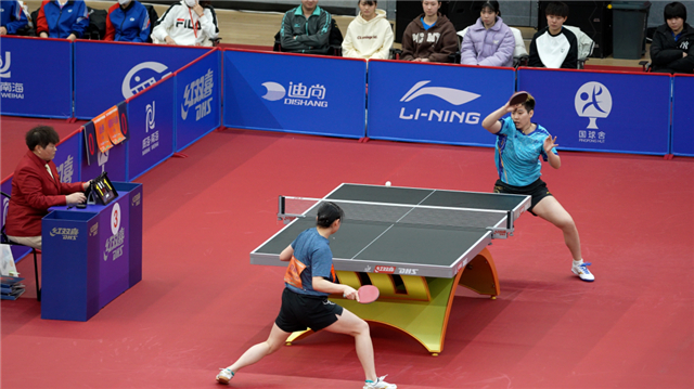 ??????臺前的運動員正打得焦灼,觀眾席上的人們目不轉睛緊盯賽況。“我了解到此次賽事,立馬帶著朋友就來到現場,完全被現場青少年們的熱情所感染,感受到了威海南海乒乓球事業的蓬勃發展。”謝穎姿說,作為高校學生,“校門口”的大型體育賽事讓她體會到南海燃動的體育熱潮,為她帶來豐富精神享受。