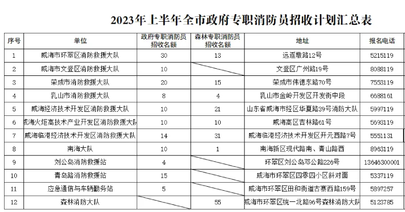 ??????1.此次政府專職消防員招聘由威海市消防救援支隊組織。