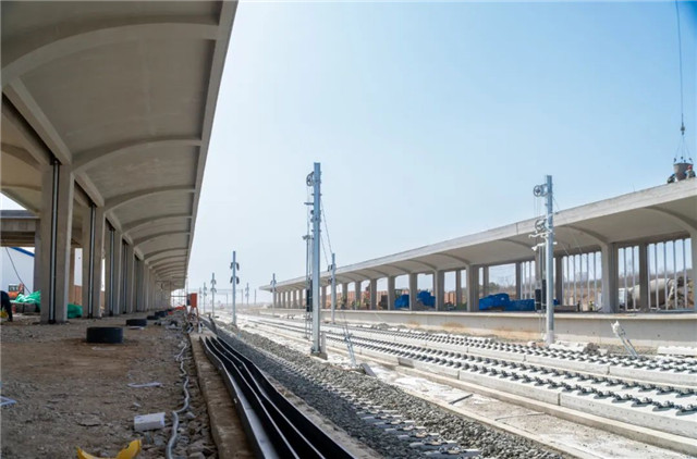 ??????3月23日,由中建八局承建的萊榮高鐵乳山南站施工現(xiàn)場如火如荼,站房主體建設(shè)完成,外幕墻施工完成,預計5月底基本建成。目前,萊榮高鐵整體工程建設(shè)已進入沖刺階段,計劃于10月底具備通車條件,年內(nèi)開通運營。