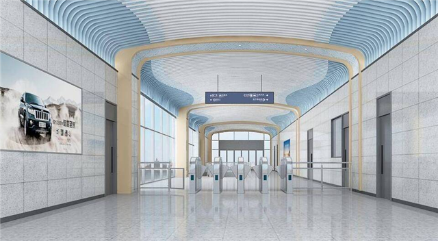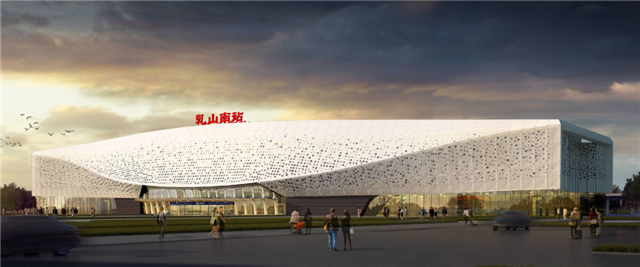 ??????新建乳山南站位于乳山城區(qū)東南側(cè),車站位于威青高速公路以南,世紀大道以東、金銀大道以西澤村附近,緊鄰濟青高速公路出口,距離乳山城區(qū)約4公里,距離乳山銀灘約14公里。乳山南站以“山海相融,大愛乳山”的設(shè)計理念,建筑整體采用自由雙曲線形式,以柔美的弧度勾勒山水環(huán)繞、相依相融的柔美姿態(tài),體現(xiàn)乳山大愛、包容的城市文化。在室內(nèi)裝修中融入了“乳山愛、山海情、巧鉤織、寧海綢”的地域文化元素,展現(xiàn)出專屬乳山這座城市的藝術(shù)底蘊及文化情結(jié)。
