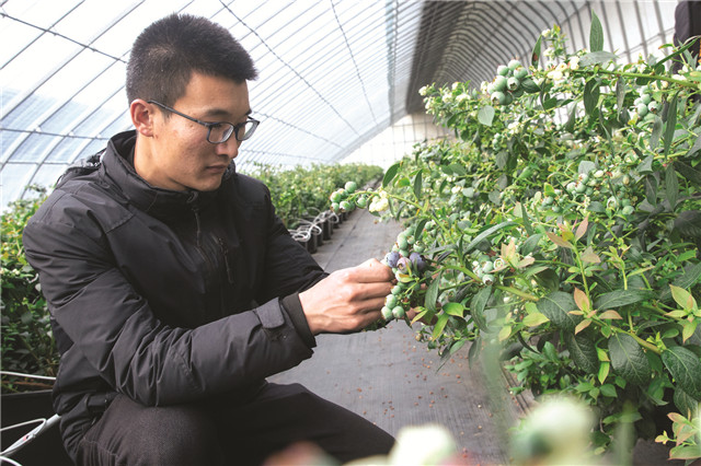“第五代藍(lán)莓智慧大棚內(nèi)設(shè)有環(huán)境設(shè)備監(jiān)測(cè)、溫濕度傳感、光照、土壤水分等各類(lèi)傳感節(jié)點(diǎn),能夠?qū)崿F(xiàn)自動(dòng)控溫控濕等功能,為藍(lán)莓生長(zhǎng)創(chuàng)造一個(gè)最佳環(huán)境,有效提高藍(lán)莓產(chǎn)量和品質(zhì)。”清晨,乳山市夏村鎮(zhèn)膠東伯瑞藍(lán)莓基地生產(chǎn)經(jīng)理殷曉磊來(lái)到大棚內(nèi)查看藍(lán)莓長(zhǎng)勢(shì)。