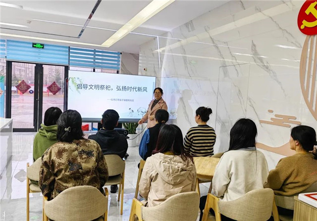 宣講中,嘉和社區黨委書記、居委會主任劉鑫鑫號召廣大居民朋友積極發揮自身作用,倡導身邊人,營造社會文明新風尚,大力弘揚中華民族“尊老愛幼、孝親敬老”傳統美德,樹立和提倡“厚養薄葬”觀念。
