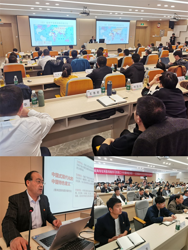 ??????4月12日,由山東省社科聯主辦,威海市社科聯、榮成市委宣傳部、榮成市社科聯承辦的山東省暨威海市社科聯系統黨的二十大精神宣傳貫徹系列宣講活動走進榮成市。