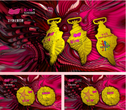 歡樂跑、親子跑完賽獎牌則由具備豐富馬拉松參賽經驗的知名設計師李淳設計,獎牌融入貝殼、海螺、海星等海洋元素,盡顯乳山特色。