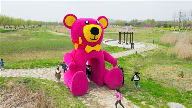 在金花河濕地公園,探索神秘“稻草王國”