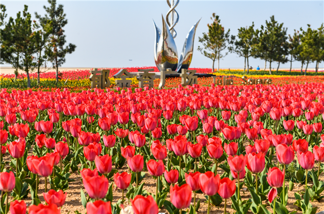 如果說春天是遠道而來的浪漫,那郁金香就是春天里最好的文案。在南海新區郁金香廣場上,5000平方米各色各樣的郁金香如織錦般鋪滿大地,巨型仿真郁金香雕塑、風車呼應著盛情開放的花朵,漫步其中,感受的是春風的溫柔,生活的慵懶。