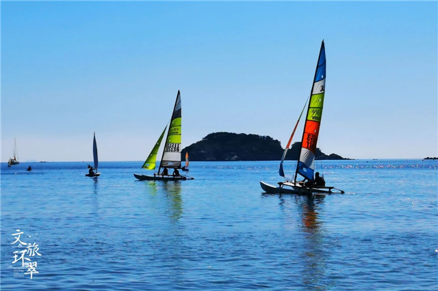 ??????在威海環翠,你可以選擇一艘帆船,去海上看看,真正來一次乘風破浪。海灘上一艘艘潔白的帆船,依次跳下了海,在海風的推波助瀾下,載著一船船熱鬧,開開心心駛向了遠方。