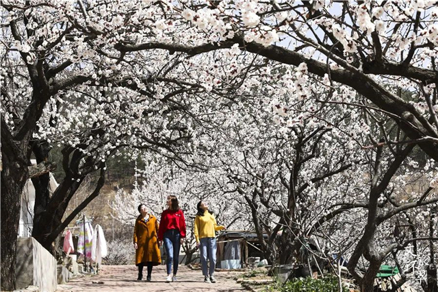 ??????麥黃時節(jié),山坳到處都是盛開的杏花,一朵朵,一簇簇,綻放在枝頭,如云絮一般輕柔。