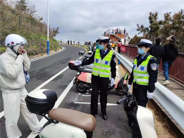 ??????同時(shí),交警部門于節(jié)日期間在環(huán)海路設(shè)立電動(dòng)自行車勸導(dǎo)服務(wù)站,勸導(dǎo)來(lái)往不戴頭盔、不安全駕駛等不文明行為并現(xiàn)場(chǎng)為游客提供飲用水和指路服務(wù)。