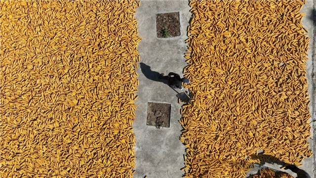 ??????農(nóng)民在聊城市茌平區(qū)杜郎口鎮(zhèn)張莊村晾曬玉米 馬紅坤 攝