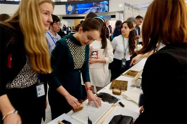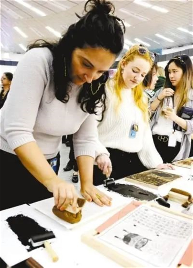 ??????參觀者在體驗中國傳統拓印