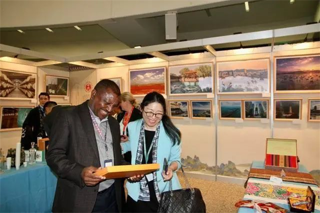 ??????在維也納聯合國中文日活動上,聯合國城一樓圓形大廳里,同時展出了“字、景、史、畫”漢字展,“文源海岱”文化主題展,“好客山東 好品山東”主題展和“翰墨齊魯”書畫展四大板塊,參觀者能品嘗到青島啤酒、張裕紅酒、花冠白酒等齊魯美酒,還能“沉浸式”體驗漢字(漢畫)拓片、剪紙等技藝;開幕式演出上,則有《沂蒙山小調》等傳統民樂,可謂集齊了好看、好吃、好用、好玩各種“硬貨”。