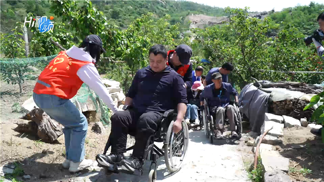 ??????5月19日上午,威海市文登區界石鎮三瓣石村南山坡一處櫻桃園里,來了一批特殊客人。他們在志愿者的幫扶下坐著輪椅走進階梯型的櫻桃園,有說有笑地開心采摘,他們就是來自威海中心城區和文登的20余名輪椅殘疾人和威海長城愛心大本營的志愿者們。