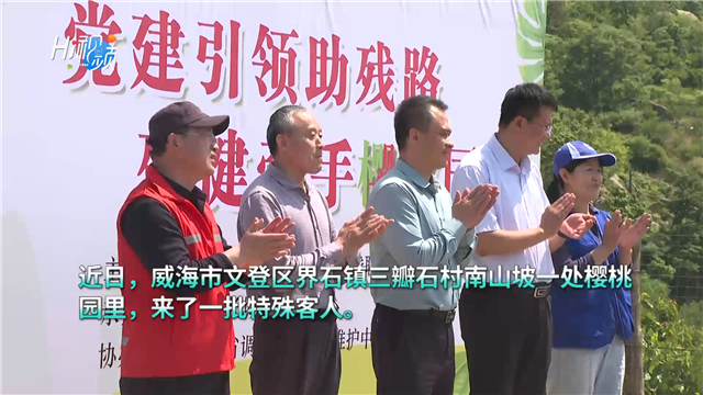 ??????當日,威海市文明辦、市殘聯,環翠區文明辦、環翠區殘聯聯合威海長城愛心大本營、山東省調水工程運行威海分中心等單位,在這里舉行了“黨建引領助殘路 殘健牽手櫻桃園——威海市殘疾人櫻桃采摘”主題黨日活動。