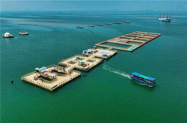 ????愛倫灣海洋牧場擁有一組2000多平方米的塑膠浮動平臺,一個600平方米的自動升降式平臺以及1000畝的藻、貝類的養殖觀光區。在這里,你可以乘著游艇駛向深海,在疾駛中感受大海的壯闊,登上平臺,一邊欣賞波光粼粼的海面,一邊享受剛捕撈出水的美味海鮮,這就是夏日海邊之旅的靈魂所在!