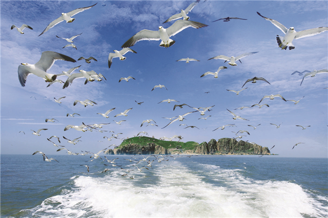 ????“海驢島”被譽為“仙山鳥島”。每年春夏,數以萬計的黑尾鷗和黃嘴白鷺登島繁衍,海驢島因此也被稱為“鷗鷺王國”。游客乘船在海驢島附近海域暢游,只需輕輕伸手便可和海上精靈親密接觸。