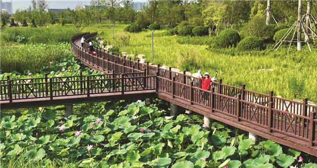 ??????想要尋一處清涼避暑之地,除了萬畝松林,金花河濕地公園、香水河公園也是不錯(cuò)的選擇,這里是五壘島灣國家濕地公園的組成部分。特別是112萬平方米的金花河濕地公園,蘆葦茂密、水草豐盛,每一處都寫滿了浪漫詩意,如果你想尋一處幽靜,來這里最好不過了。香水河公園里的荷花漸次盛開,細(xì)細(xì)看去,一朵朵出水芙蓉伴著綠葉簇?fù)碓诎哆叄瑢訉盈B疊地向外鋪展開來,構(gòu)成一幅靜謐美好的夏日美景圖。