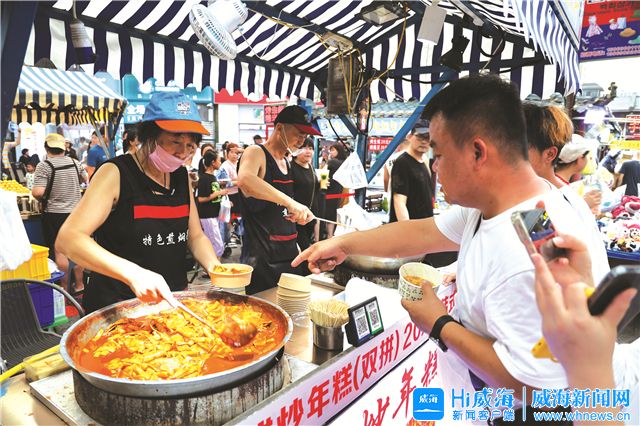 ??????威海人用熱情留下了劉新華,而劉新華也用熱情讓更多游客感受到威海的魅力。在韓樂坊夜市,劉新華除了認真為每位客人準備美食之外,還會主動向游客介紹威海美景和其它美食。