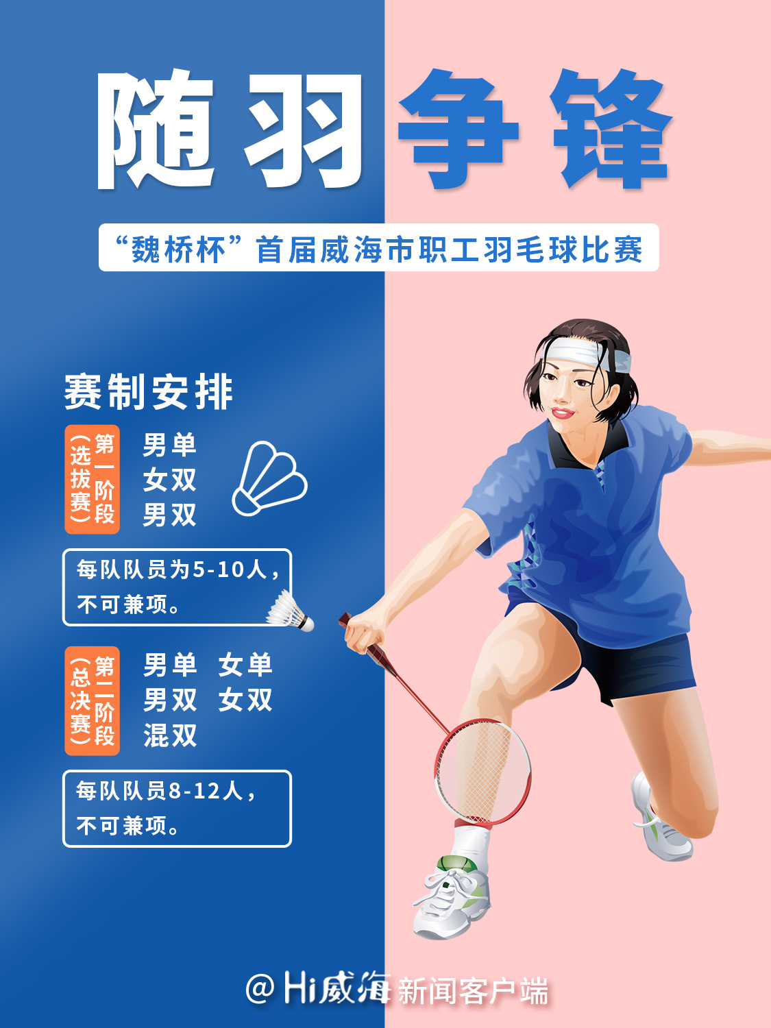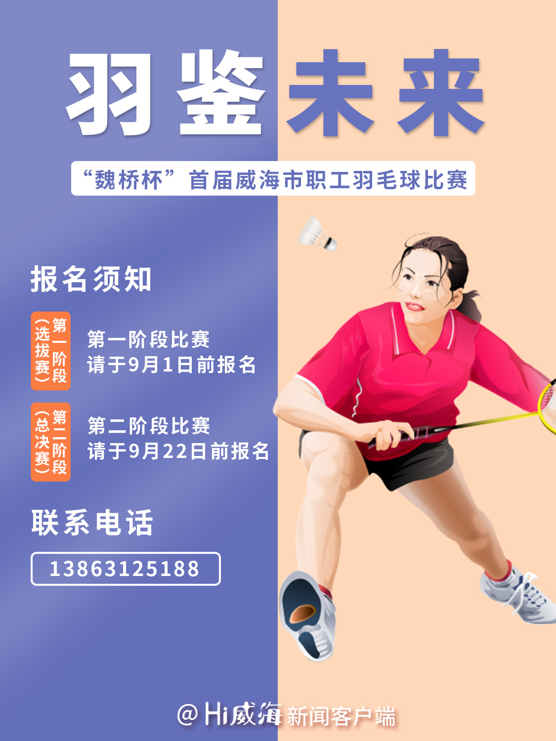 9月,“魏橋杯”首屆威海市職工羽毛球比賽將正式開(kāi)賽,目前進(jìn)入報(bào)名選拔階段,現(xiàn)為大家送上最新、最全、最強(qiáng)報(bào)名攻略,各位羽毛球發(fā)燒友趕快準(zhǔn)備起來(lái)吧!