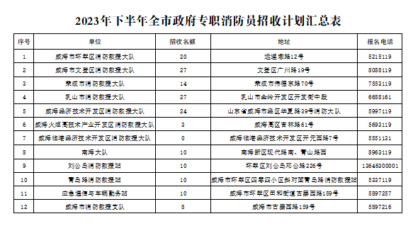 1.此次政府專職消防員招錄由威海市消防救援支隊組織。