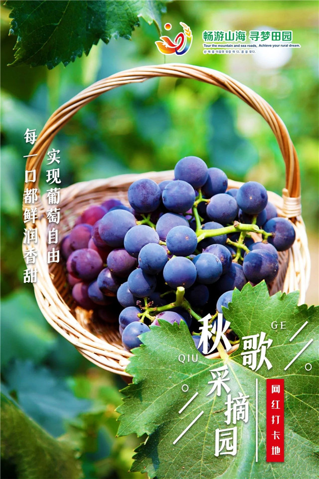 位于里口山的秋歌采摘園,藤蔓綠葉間,與滿架葡萄相遇,陽光剛好,它說,今日宜蓄甜。