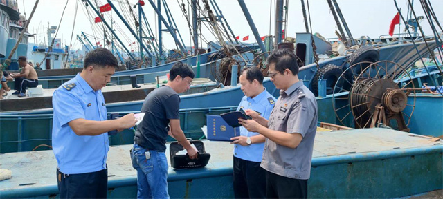 隨后,環翠區海洋與漁業綜合執法大隊的執法人員和遠遙碼頭安全應急科的工作人員一起,對漁船必須持有有效期內船檢證書、國籍證書、捕撈許可證、船員保險、消防設施、救生設施等進行個別抽查,確保職務船員合規配備,所有船員持證上崗,排除安全隱患。