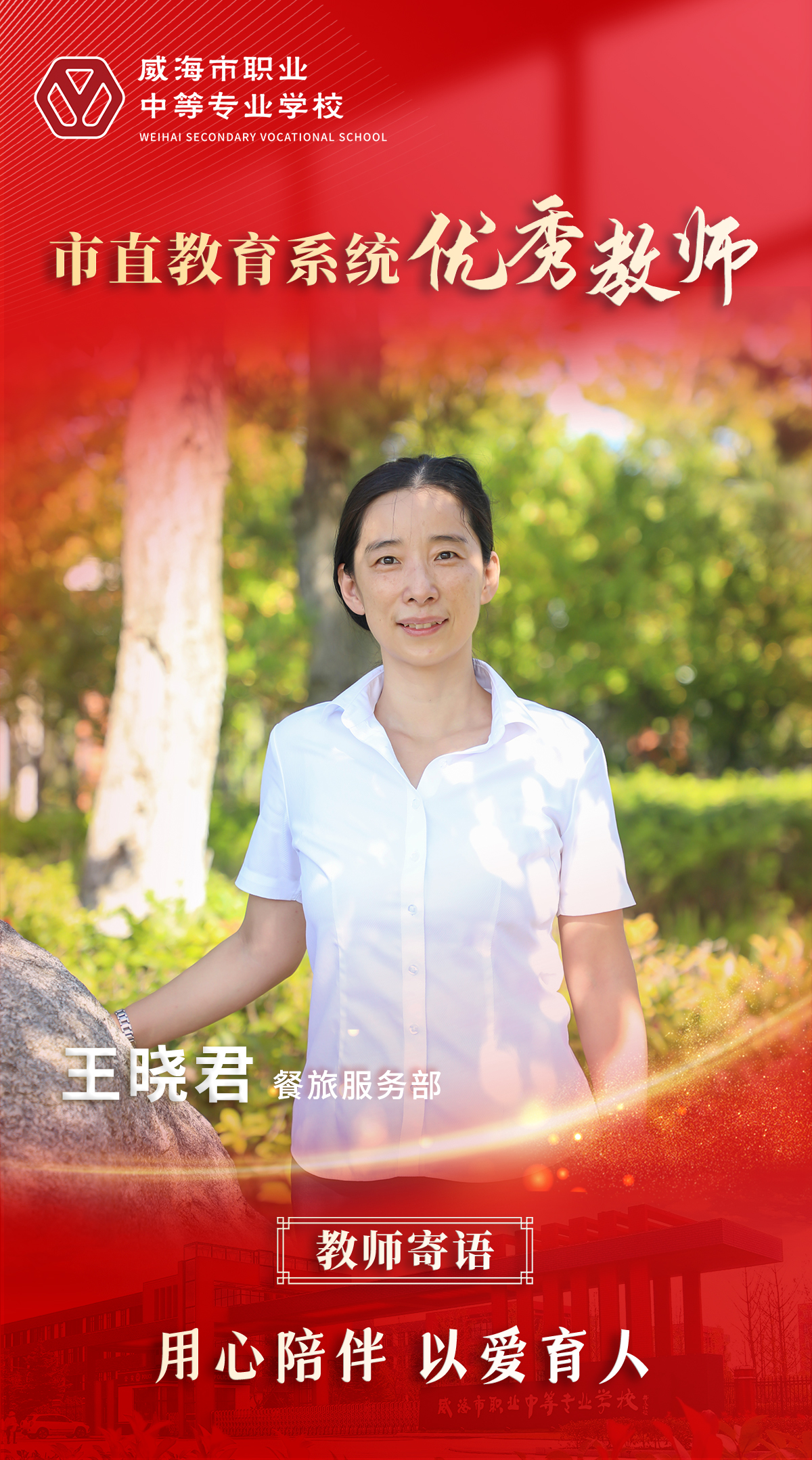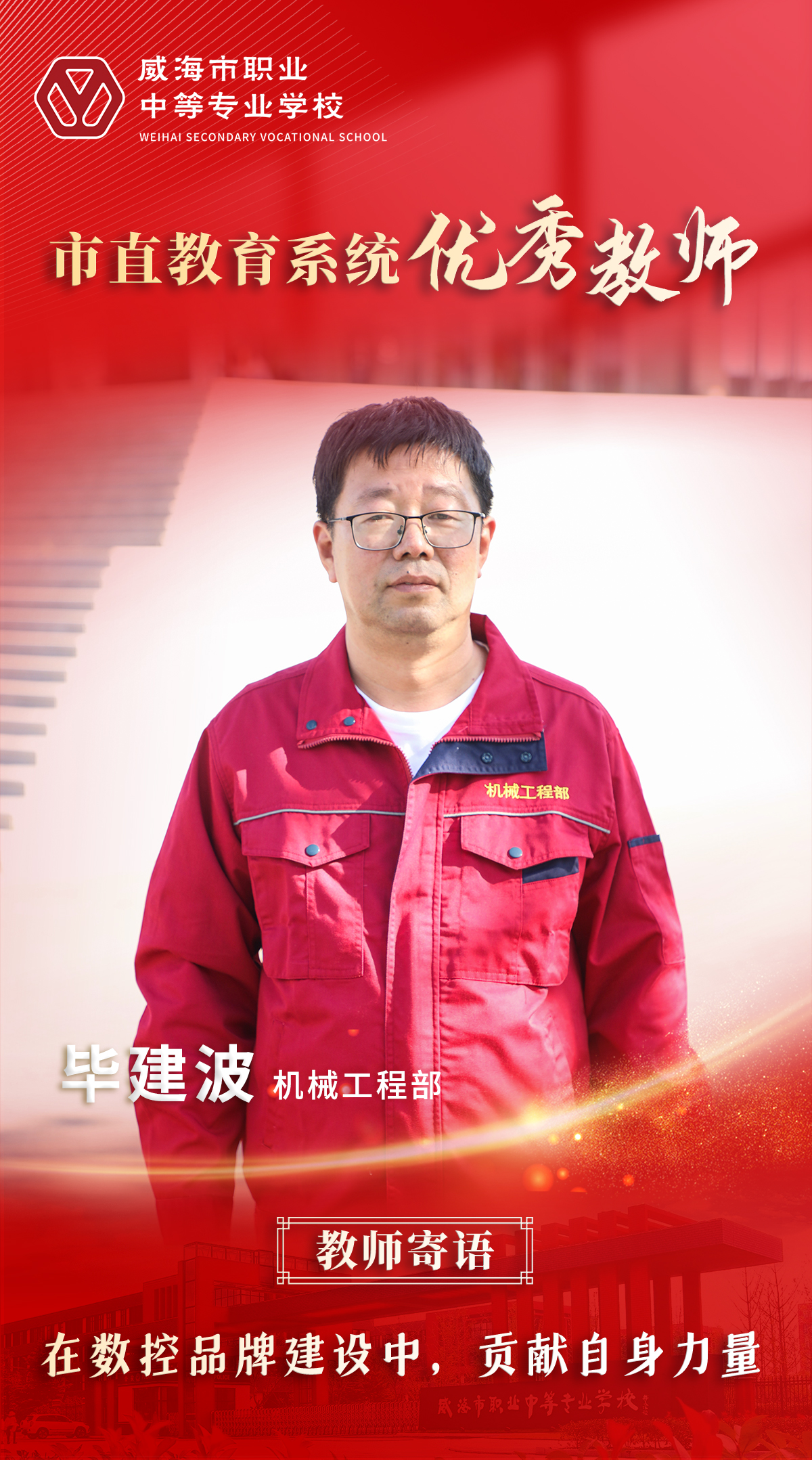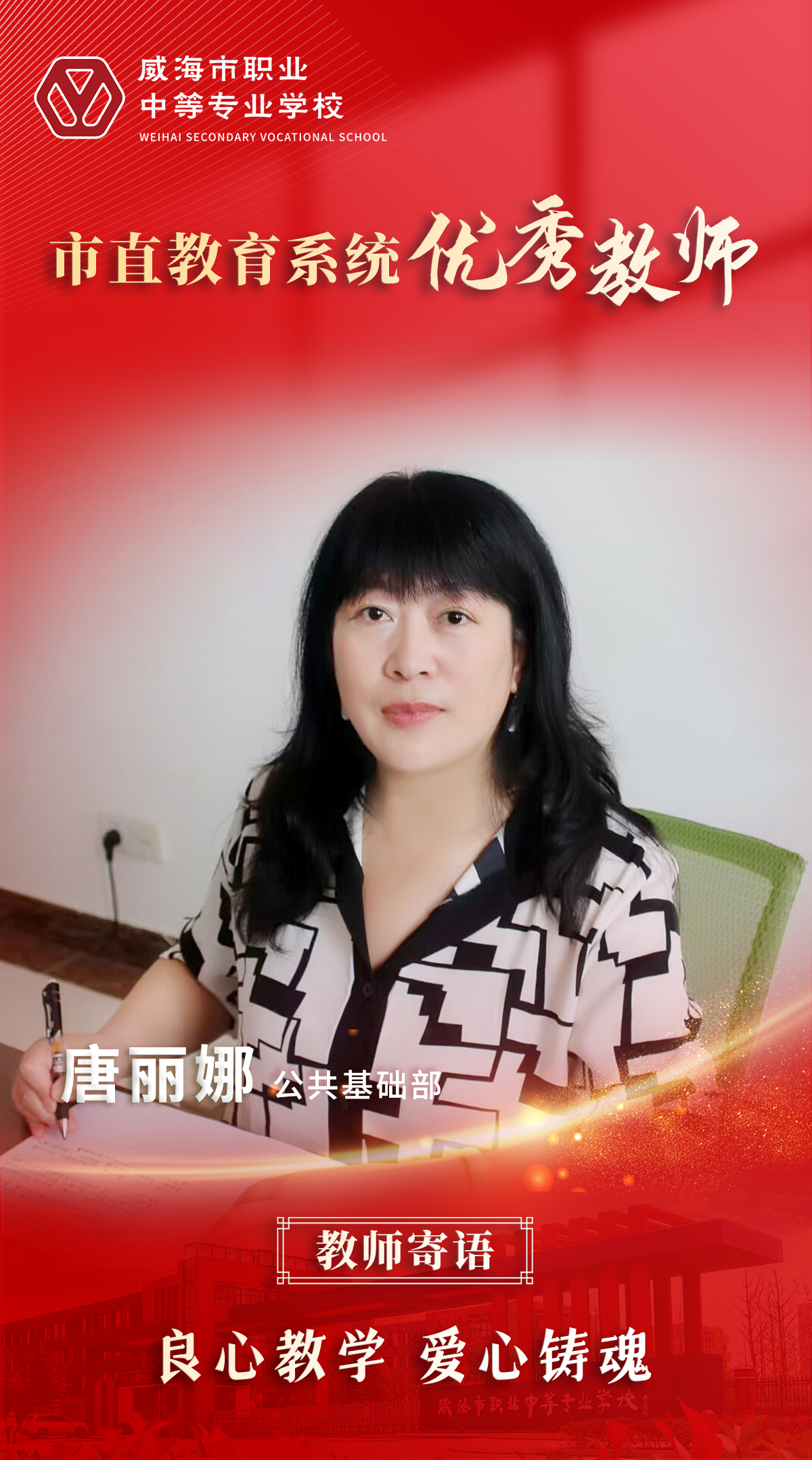 一片丹心育桃李,三尺講臺寫春秋。新時代新征程,威海職專全體教職工必將牢記習近平總書記對教育事業的殷殷囑托,向榜樣看齊,以良好師德師風,培育良好的教風學風,助力學子圓夢成才,為學校高質量發展貢獻力量。