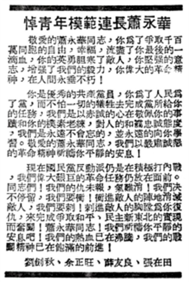 ??????悼模范連長肖永華的報