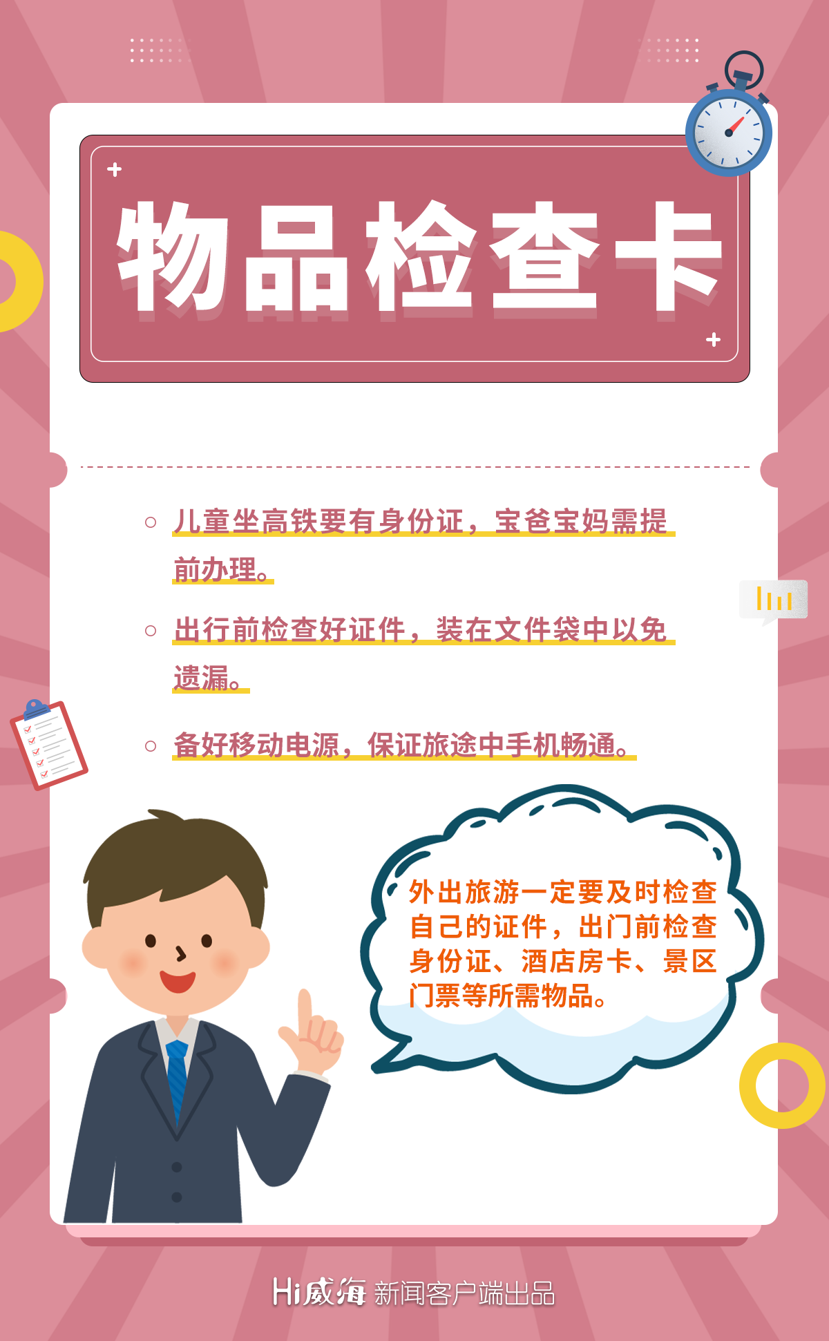 當(dāng)國慶遇上了中秋,又到了我們期待已久的假期時刻,想必小伙伴們有“一籮筐”想要去旅游打卡的城市、地點。出發(fā)在即,揣好這5張出行提醒小卡片,“助”你旅途愉快,開心過“雙節(jié)”!